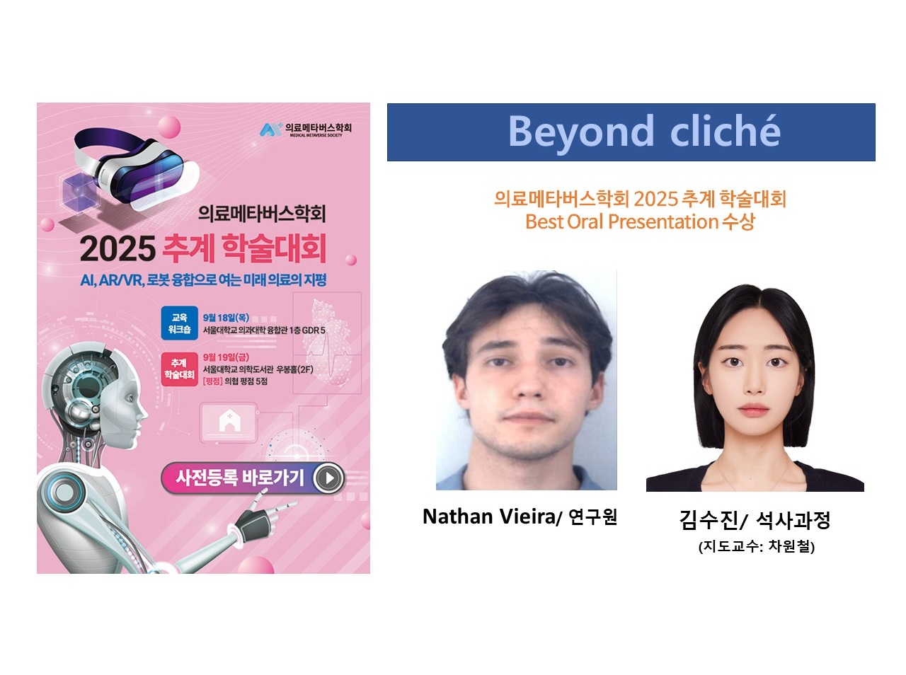 [수상][차원철 교수 연구팀] 의료메타버스학회 2025 추계 학술대회 Best Oral Presentation 수상