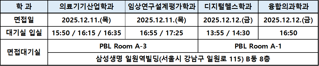 안녕하세요. 삼성융합의과학원 면접전형 일정 및 진행사항을 안내드립니다.
