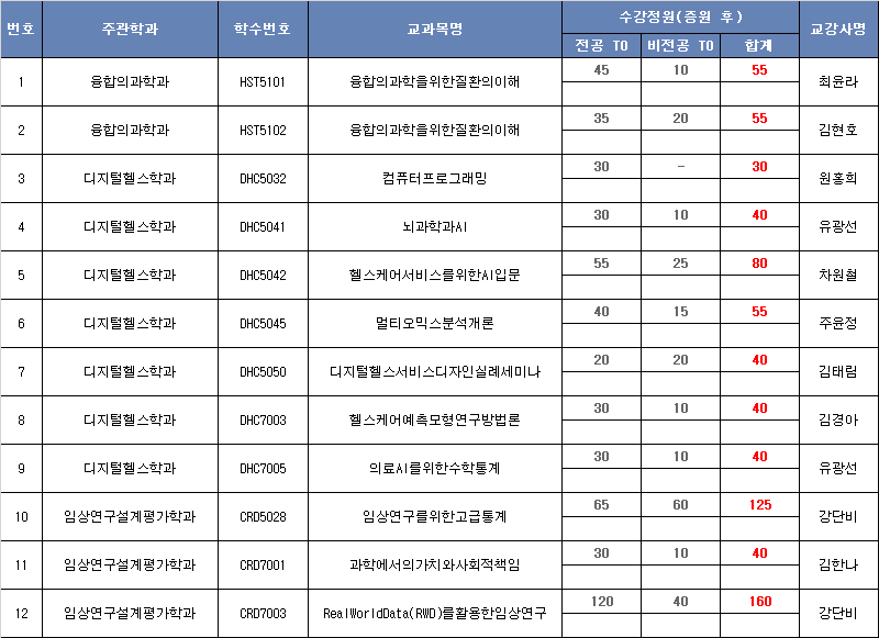 삼성융합의과학원 개설수업 1차 증원 결과를 아래와 같이 안내합니다.
