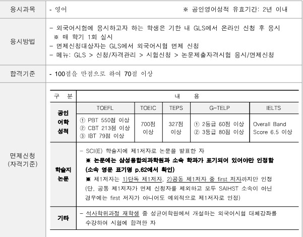 ※ 외국어시험 면제 신청 또한 해당 기간 내에 신청해야 합니다.
