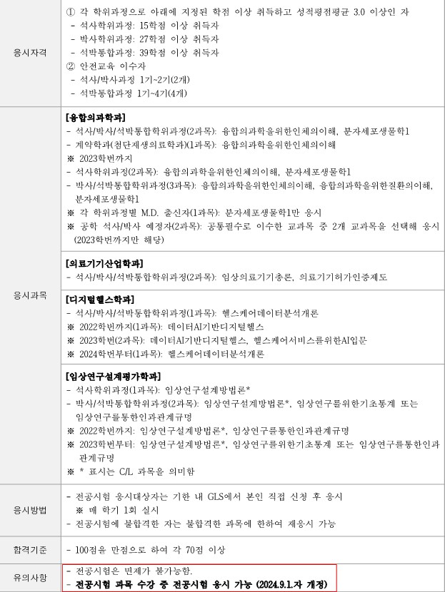 ※ 전공시험 과목 수강 중 전공시험 응시 가능 (2024.9.1.자 개정)
