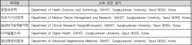 | 구분 | 융합의과학과(첨단재생의료학과) | 임상연구설계평가학과 |